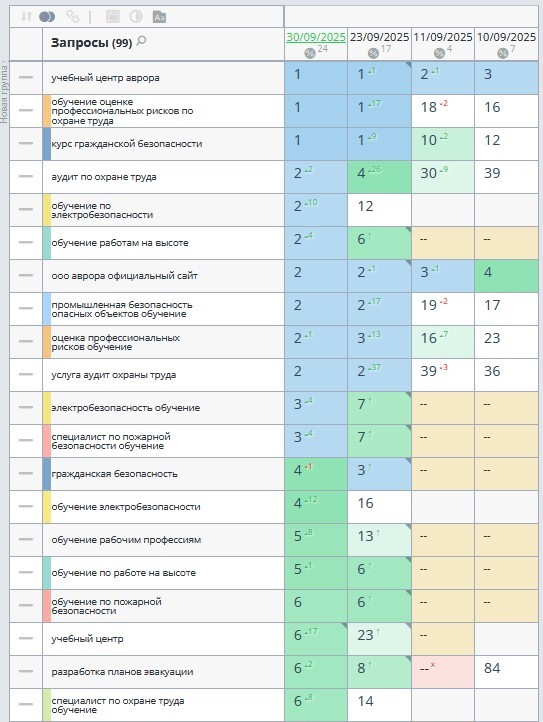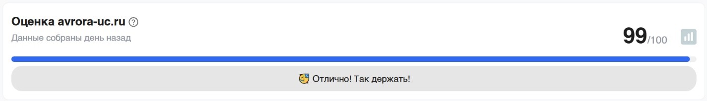На данный момент системный подход по SEO-продвижению для сайта Учебного центра «Аврора» позволил заложить качественную основу для роста в поисковых системах.
