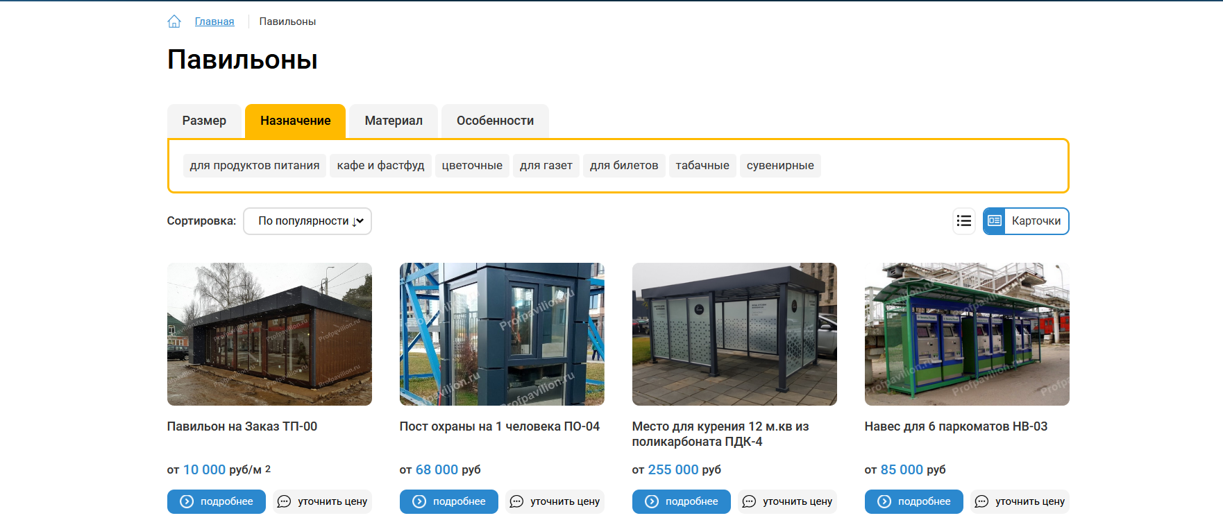 В течение второго месяца проведён редизайн сайта с выделением 7 основных разделов и подразделов для часто запрашиваемых типов павильонов. Совместно с заказчиком собраны фотографии и данные по реализованным проектам, что позволило сформировать каталог готовой продукции. Одновременно настроены человеко-понятные URL (ЧПУ), перелинковка и базовая оптимизация метатегов для ключевых страниц. По итогу более 100 страниц с дальнейшим ежемесячным увеличением на 10-15 страниц. Выполнена адаптивная вёрстка для мобильных устройств, ускорена загрузка страниц за счёт оптимизации изображений и кода.