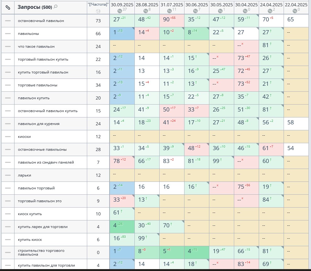 По итогам шестого месяца сайт достиг ТОП-3 в Яндекс по запросу «торговые павильоны». Проведён финальный аудит, зафиксировавший рост органического трафика, улучшение поведенческих факторов и видимости в поиске. Подготовлен отчёт с рекомендациями по поддержанию и развитию результатов, включая планы по дальнейшему расширению контента и внешнего продвижения. Также выполнены работы по A/B-тестированию элементов сайта и настройке автоматических отчётов для постоянного контроля показателей.